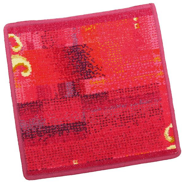 幾何学模様が描かれた、グラデーションがキレイなタオルハンカチです。しっかりと厚みもあり、タオル地になっているため、手を拭きやすいのが魅力。ステッチにパイピングを使用し、さり気ないアクセントになっています。バッグから赤いハンカチを取り出して、小物で女性らしさを出してみましょう。