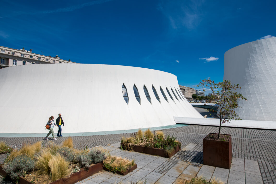こんにちは、吉田タイスケです。今回はマルセイユに次いでフランス第二の港湾都市であり、第二次世界大戦後に再建された街並みが世界遺産に登録されているル・アーヴルから。写真はブラジル人の世界的建築家、オスカー・ニーマイヤーが手がけた文化センター「ル・ヴォルカン(火山)」。青空に白が映えます。