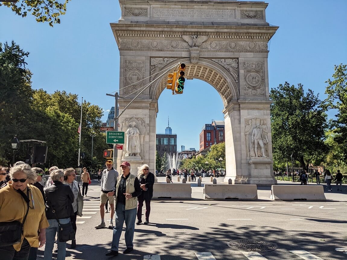 1889年に初代大統領ジョージ・ワシントンの功績を称えて、木製のアーチが建てられたんですが、そのあまりの人気ぶりに1892年には現在のアーチが建立されたそうです。この辺りにはニューヨーク大学のキャンパスもあって、学生街でもあります。