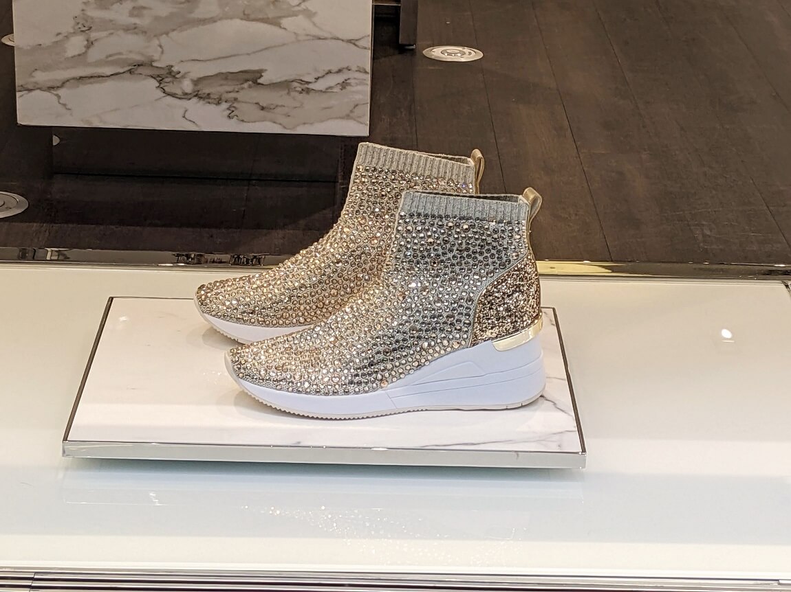 ロックフェラーセンター近くのマイクル・コースも銀色のドレスにシューズ、スニーカーも銀色でした。