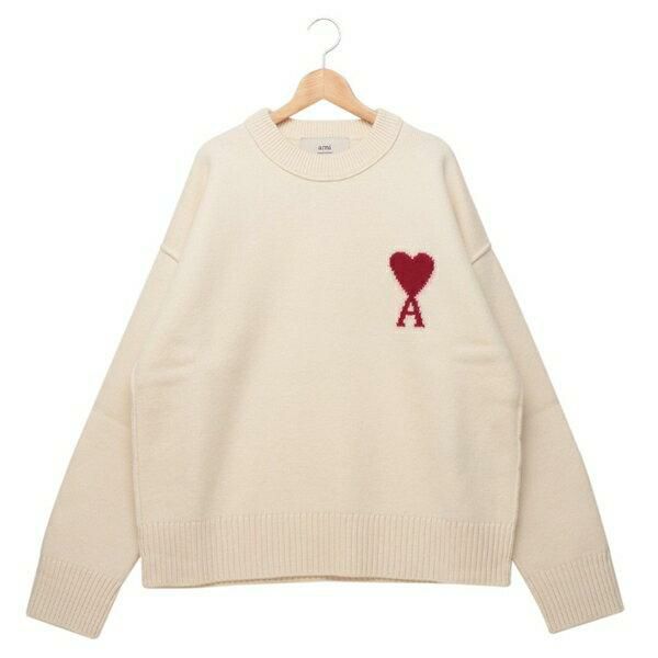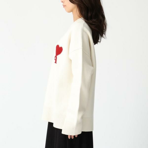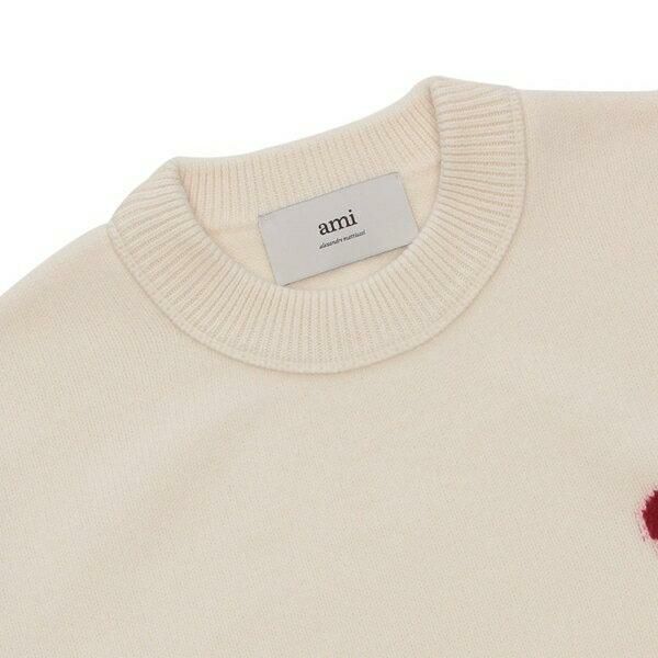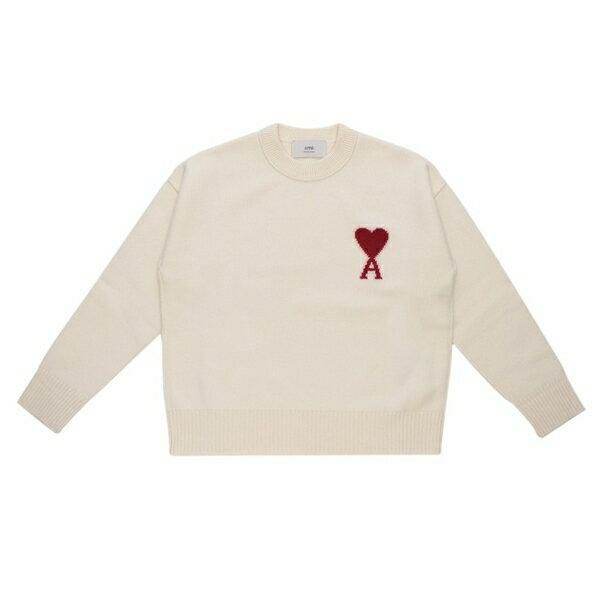 アミパリス ニット セーター アミドゥクール メリノウール ホワイト レッド メンズ レディース ユニセックス AMI PARIS BFUKS006018 154
