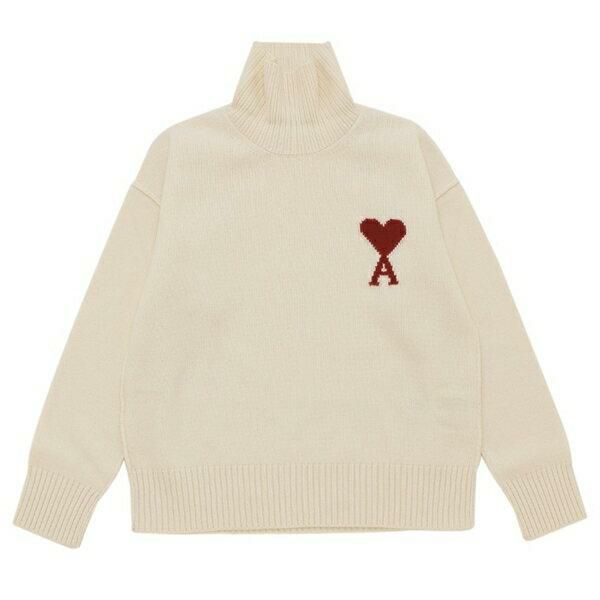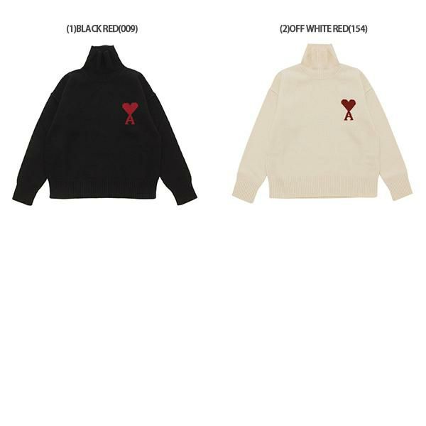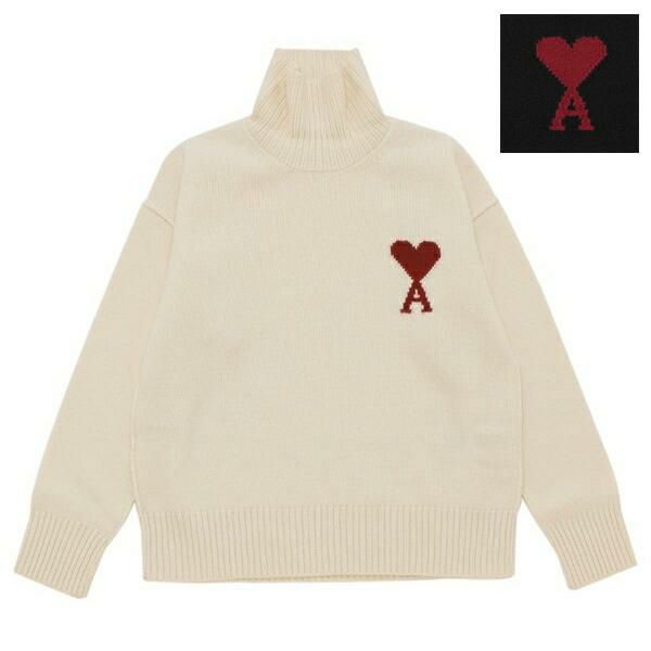 アミパリス ニット セーター アミ ドゥ クール タートルネック ホワイト レッド メンズ レディース AMI PARIS UKS839U 018 154 2025秋冬新作