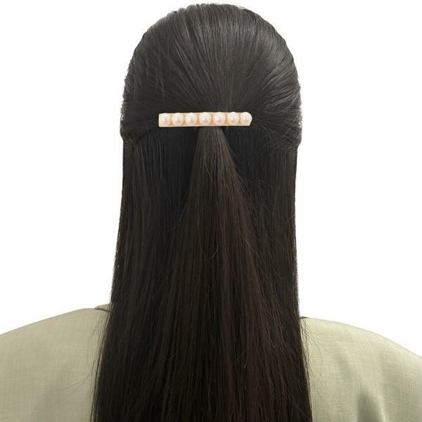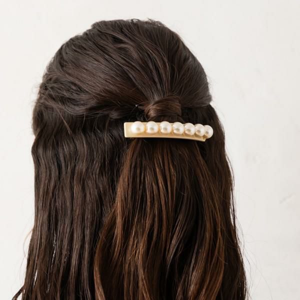 立体的なパールが上品に引き立つデザイン。ハーフアップなどのまとめ髪にプラスするだけで、華やかな雰囲気に仕上がります。普段使いにはもちろん、パーティーシーンにも活躍する一品です。
