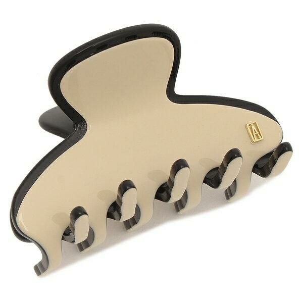 落ち着きのある配色が大人らしいヘアクリップ。さり気なく施したロゴがアクセントになっています。さっと留められるクリップ式なので、ハーフアップやまとめ髪などのヘアアレンジにおすすめです。