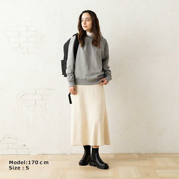 ベーシックなクルーネックデザインのスウェット。胸元に施したロゴとハートの刺しゅうがキュートなアクセントです。肌当たりの良い裏毛素材を使用しており、快適な着心地をキープ。パンツからスカートまで幅広いボトムスにマッチします。