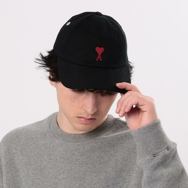 アミパリス 帽子 エンブロイダリー キャップ ブラック メンズ レディース ユニセックス AMI PARIS BFUCP006 AW0041 001 AMI DE COEUR BLACK ピーチエフェクト コットンギャバジンキャップ シグネチャーアイレット (kb20) |