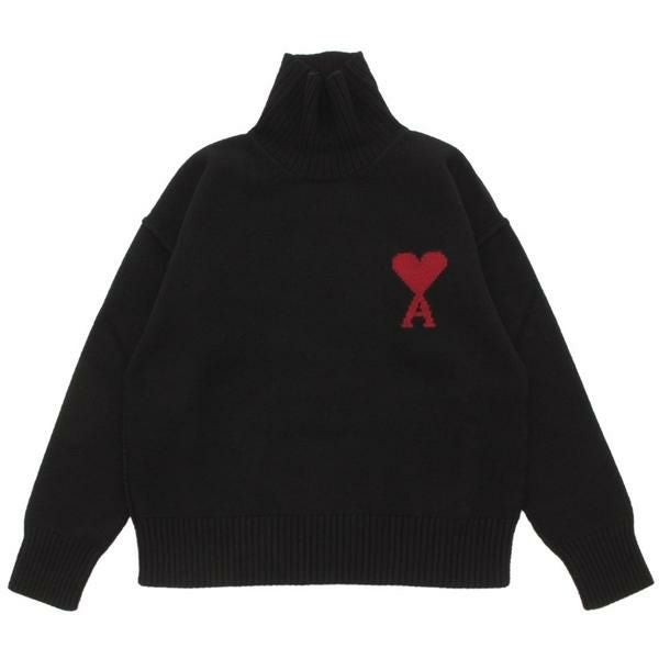 アミパリス ニット セーター タートルネック ブラック メンズ レディース ユニセックス AMI PARIS BFUKS406 H25UKS839 018 009 AMI DE COEUR FUNNEL NECK SWEATER BLACK RED ハートロゴ (kj20) |