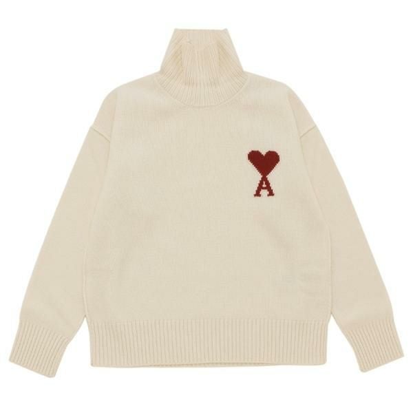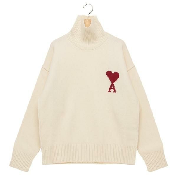 アミパリス ニット セーター タートルネック ホワイト メンズ レディース ユニセックス AMI PARIS BFUKS406 H25UKS839 018 154 AMI DE COEUR FUNNEL NECK SWEATER OFF WHITE RED ハートロゴ (kj20) |