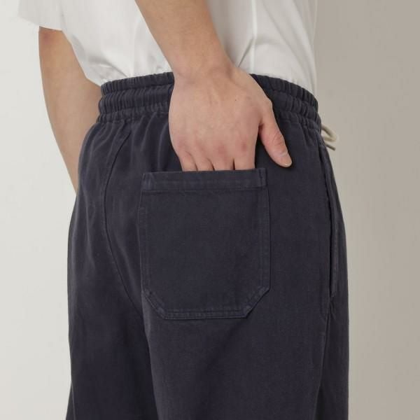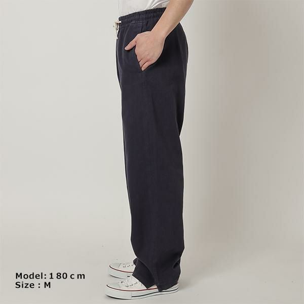 抜け感漂うゆったりとしたシルエットのパンツ。適度に厚みのある生地でカジュアルながら上品な印象を演出します。様々なトップスと難なくコーディネートできるシンプルなデザイン。ウエストはゴム仕様のため、ストレスフリーに着用できます。