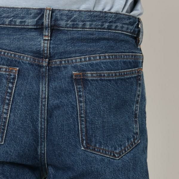 深みのある色合いにベーシックなシルエットのデニムパンツ。洗練されたこなれ感のある風合いで大人の魅力を発揮します。様々なトップスに合わせやすいシンプルなデザインで、ワードローブにあると重宝します。