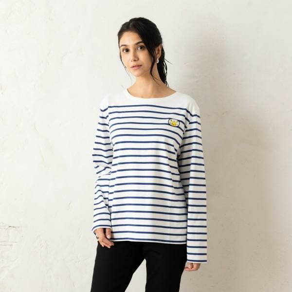 爽やかな雰囲気を放つボーダー柄のロングTシャツ。胸元にピカチュウのパッチを添えて、キュートに仕上げました。ほど良い厚みのある生地で、着心地も抜群。パンツで合わせるのはもちろん、フレアスカートやキャミワンピースでフェミニンコーデとしてもサマになります。
