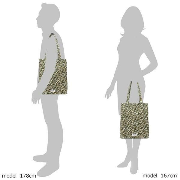 シンプルなスクエアフォルムに繊細な柄を美しくあしらったトートバッグ。フロントに配したブランドロゴ入りのタグもおしゃれなポイントです。程よいマチ幅があり、内側には小物の収納に便利なポケットを備えています。