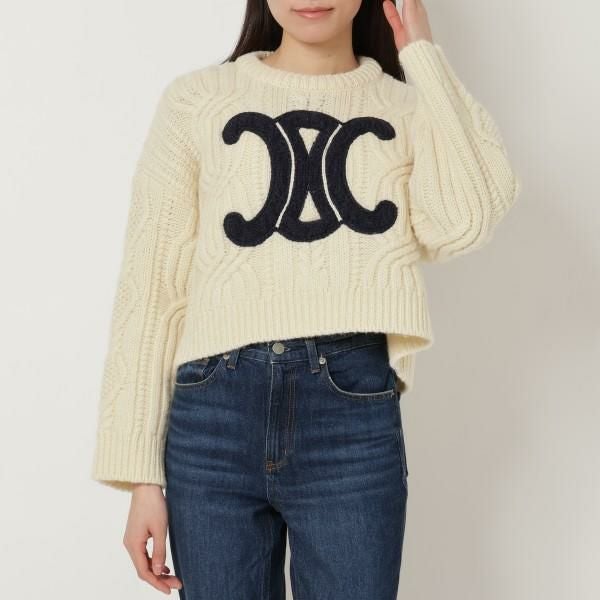 セリーヌ ニット セーター トリオンフ クルーネックセーター ホワイト レディース CELINE 2AH87050V 01YV PULL COL ROND TRIOMPHE ECRU NAVY (jb08) |
