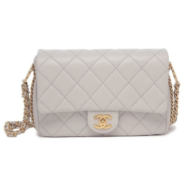 シャネル ショルダーバッグ マトラッセ CCマーク ミニバッグ ホワイト グレー レディース CHANEL AS3757 B21217 U1117 MATELASSE FLAPBAG グレーホワイト ゴールド金具 (kf23) |