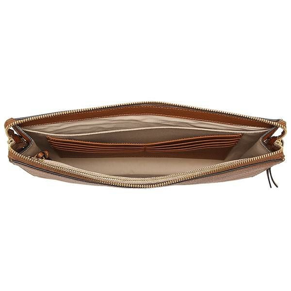 上質な風合い漂うクラッチバッグ。シンプルながらワンポイントロゴや引き手のチャームがおしゃれなアクセントになっています。内側に複数のポケットを設けており、細かいカード類の仕分けに便利な設計。ランチやちょっとしたお出かけに活躍します。