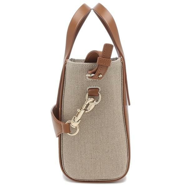 上品さとカジュアルな雰囲気をミックスした異素材の切り替えデザイン。取り外し可能なストラップにはロゴ刺しゅうをあしらいました。シーンに合わせて選べる2WAY仕様で、デイリーバッグとしてもおすすめです。