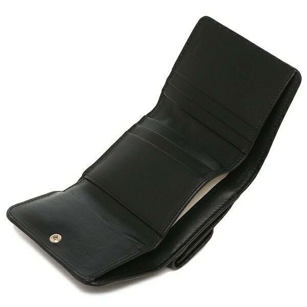 シックなカラーに同色のロゴ刺繍を施した3つ折り財布。さっと出し入れ可能なコインパースに加え、複数のカードスロットと札入れを備えた使い勝手の良い設計です。幅広い年代の方にお使いいただけるシンプルデザインです。