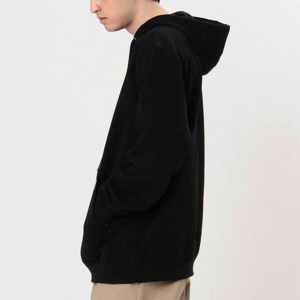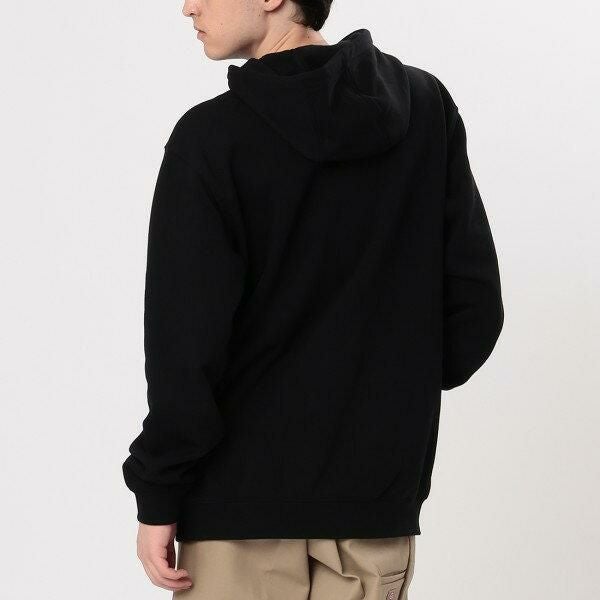 シンプルなデザインで、ボトムスを選ばない汎用性の高いパーカー。カンガルーポケットについたブランドロゴでアクセントを加えています。ゆったりとしたドロップショルダーは締め付けが少なく、着心地も良好。フードにはドローコードが付き、お好みのフォルムに調節できます。