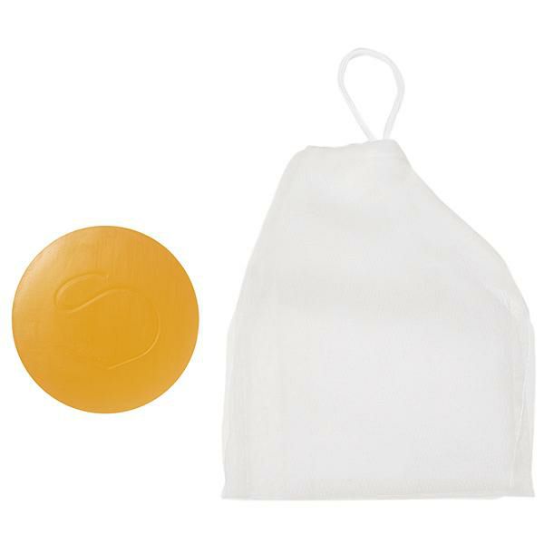 肌をいたわりながら古い角質や毛穴の汚れを取り除く、洗顔石けん。肌を整える、たけのこ皮エキス、ゆず種子油などの植物成分配合でうるおいを守り、やわらかな肌に洗い上げます。肌におだやかに、汚れだけを落として、うるおいを保ちます。2層構造で、お肌にやさしいふんわりクリーミーな泡が簡単につくれる泡立てネットとセットでお使いください。草花木果の洗顔石けんに合わせたサイズなので、石けんが逃げずに泡立てしやすいです。