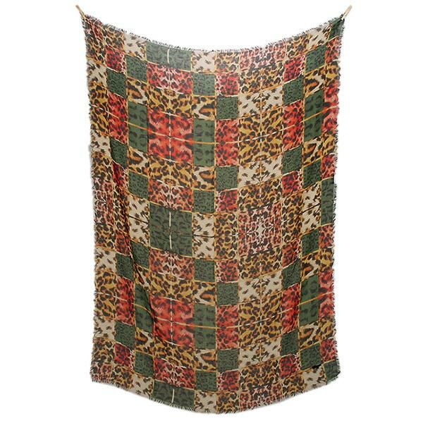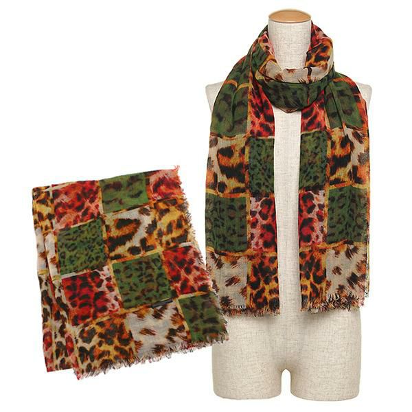 様々なカラー、種類のレオパード柄をブロックチェックのように組み合わせたインパクトを放つデザイン。肩に掛けたり、ボリュームを出しながら巻けば、お顔周りに視線を集めるアクセントになります。いつものスタイルを違った印象で楽しめる嬉しいアイテム。
