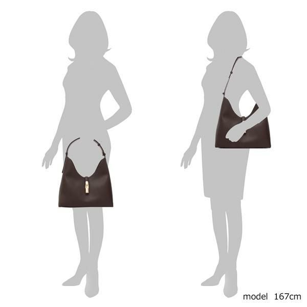 洗練された上質な風合いが大人の魅力を感じさせます。ブランドお馴染みのアーチロゴのメタルパーツがアクセントに。広い収納スペースと複数の内ポケットに加え、床に置いたときに汚れを防ぐ底ビョウ付きも嬉しいポイントです。