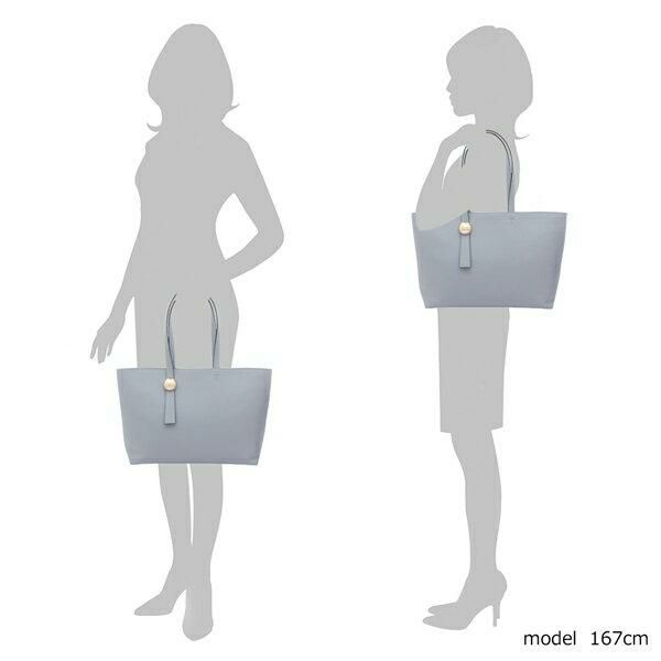 シンプルながら洗練された上質な風合いあふれるデザイン。立体的なメタルパーツを添えて、アクセントをプラスしました。内部に複数のポケットを備えており、かさばる小物をきれいに整理整頓できる仕様。肩に掛けやすい長めのハンドルも嬉しいポイントです。