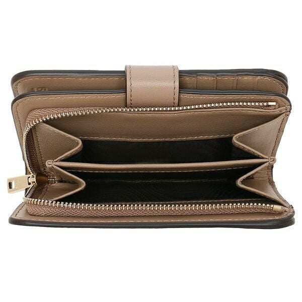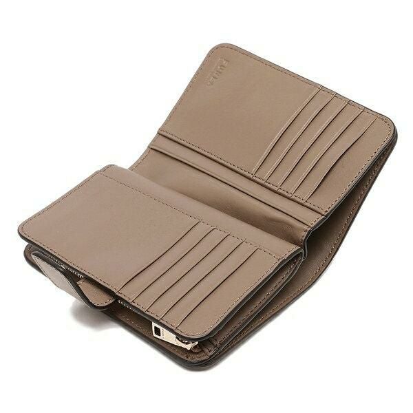 上品なニュアンスカラーで仕上げた2つ折り財布。きらりと輝くメタルロゴを添えて、アクセントを加えました。豊富なカードスロットを備えており、収納力を確保。年代や流行に左右されずにお使いいただけるアイテムです。