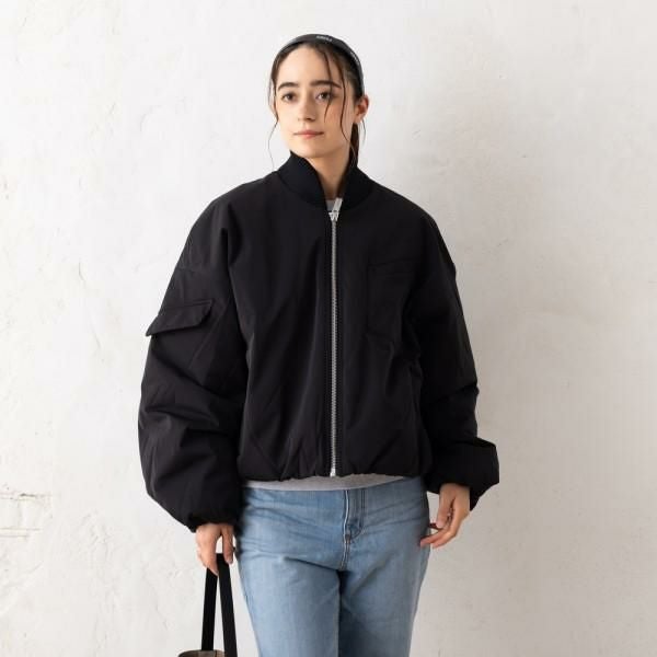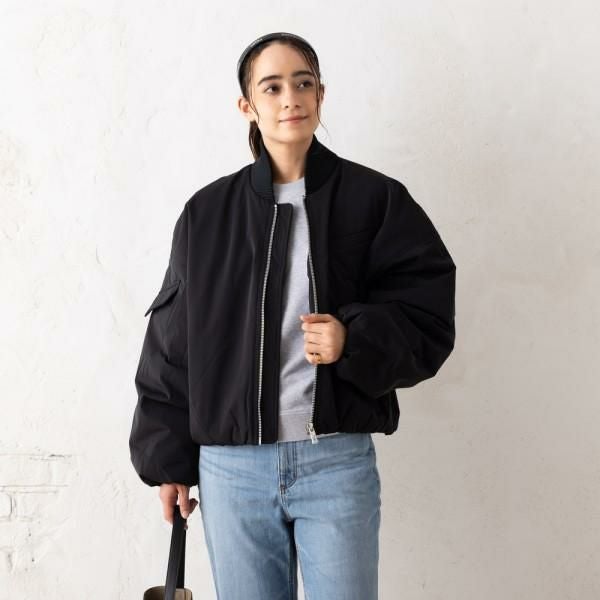 シンプルかつ女性らしい、ふんわりとしたシルエットのブルゾン。トレンドライクなショート丈で、パンツからスカートまで、さまざまなボトムスと好相性です。ゆったりとしたドロップショルダー仕様が、こなれ感を演出します。