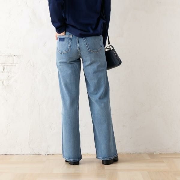 ほど良く色落ちした淡いカラーが大人のこなれ感を漂わせます。裾にかけて幅が広くなるシルエットで、快適なはき心地をキープ。後ろポケットにあしらったロゴパッチがおしゃれなアクセントに。シーズンレスで着用いただけるアイテムです。