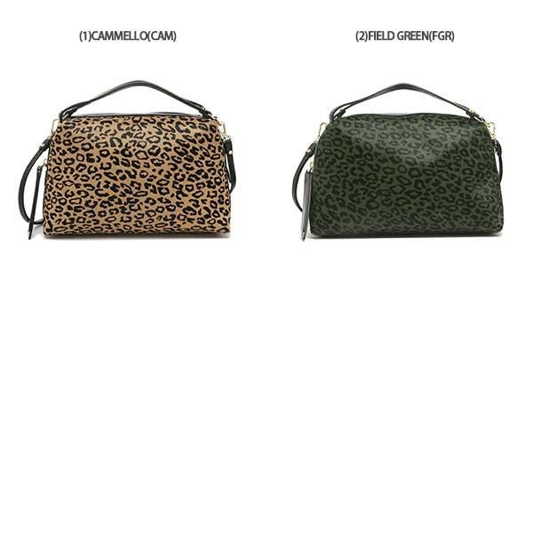 レオパード柄を落とし込んだスタイリッシュなデザイン。コンパクトなサイズ感ながら、マチ幅をしっかりと備えているので収納力も十分です。ファスナー開閉仕様でプライバシーを保護。手持ちとショルダーの2WAYでお使いいただけます。