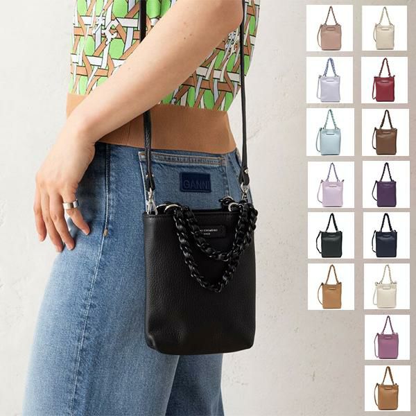 スッキリとした縦長シルエットのハンドバッグ。シンプルながら同色のチェーンやブランドロゴなど、気の利いたディテールも魅力です。ちょっとしたお出かけや、休日のデートにも活躍します。