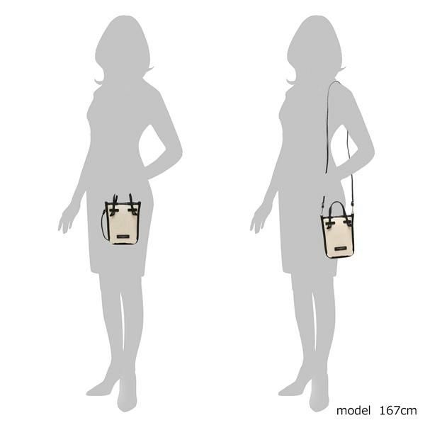 約横上部15cm/下部12cm×縦19cm×幅2.5cm / 持ち手の長さ:約21.5cm、ショルダーの長さ:約131.5cm(斜めがけ可) / 重量:約130g |