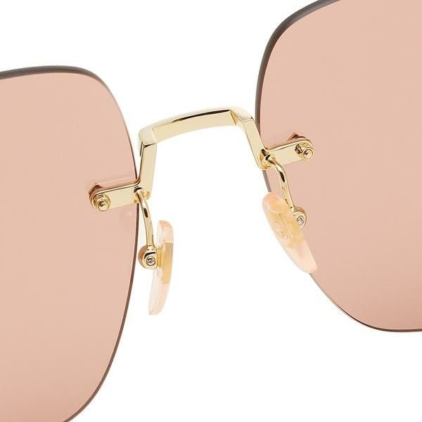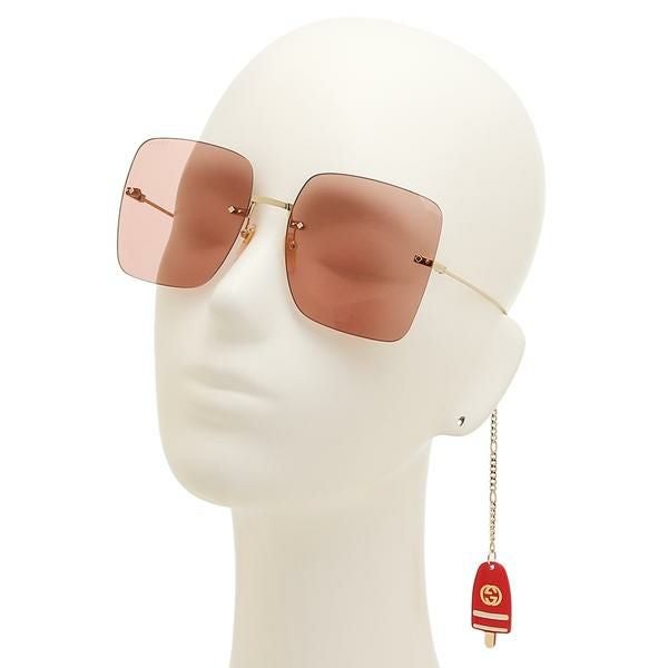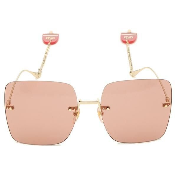 女性らしさあふれるカラーが華やかな印象のサングラス。スクエア型のレンズにさりげなくブランドロゴをプラスしました。ノーズパッドが付いているためかけ心地も良好。動くたびに揺れるチェーンは存在感をアップしてくれます。