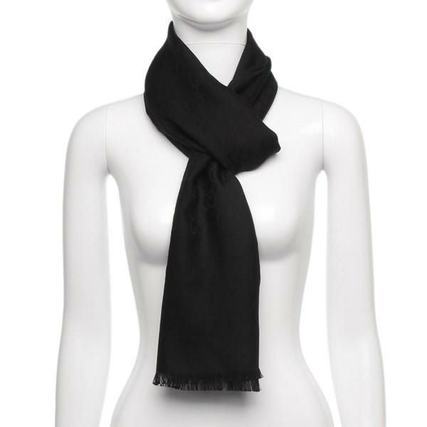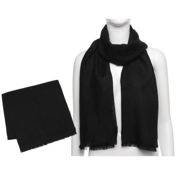 商品名 グッチ ストール スカーフ ジャガード GGロゴ シルク混ウール 大判 ブラック メンズ レディース ユニセックス GUCCI 165904 3G646 1000 BLACK (kj29)