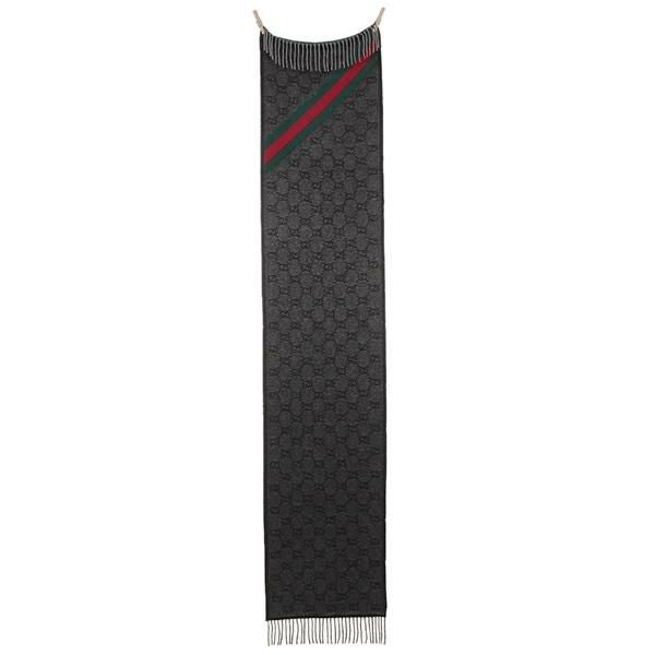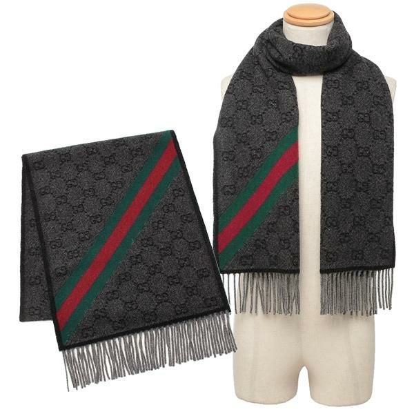 ブランドお馴染みのGGパターンに配色のラインが際立つマフラー。やや厚手の素材感で、肌寒い時期の保温効果も抜群です。カジュアルからスーツスタイルまでさまざまな装いにマッチ。大切な方へのプレゼントにもおすすめです。