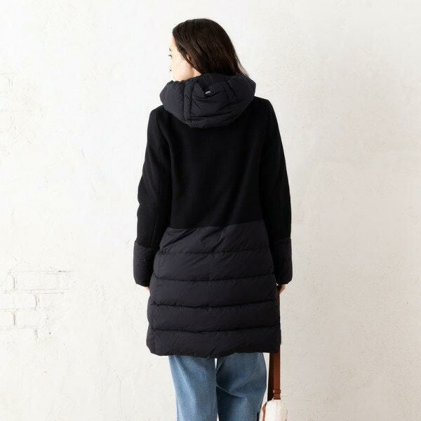 シックなワンカラーながら異素材でメリハリを効かせたデザインがポイント。着脱しやすいダブルジップ開閉や、取り外しできるフード付きなど、細かいディテールにもこだわりました。ヒップが隠れるやや長めの丈感で、あらゆるボトムスと好相性です。