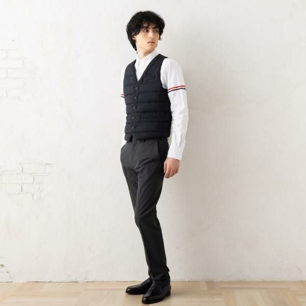 上質でマットな風合いに、キルティングデザインが印象的なダウンベストです。すっきりとしたVネックタイプで、襟付きのシャツやタートルネックと合わせたり、ジャケットのインナー使いにもぴったり。保温性に優れた軽量な素材で、着心地も抜群です。