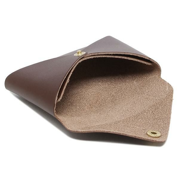 封筒のように折りたたんだデザインのカードケース。メタルボタンとロゴの刻印がアクセントになっています。手の平に収まるコンパクトサイズで持ち運びにも便利。ちょっとした贈り物にもおすすめのアイテムです。