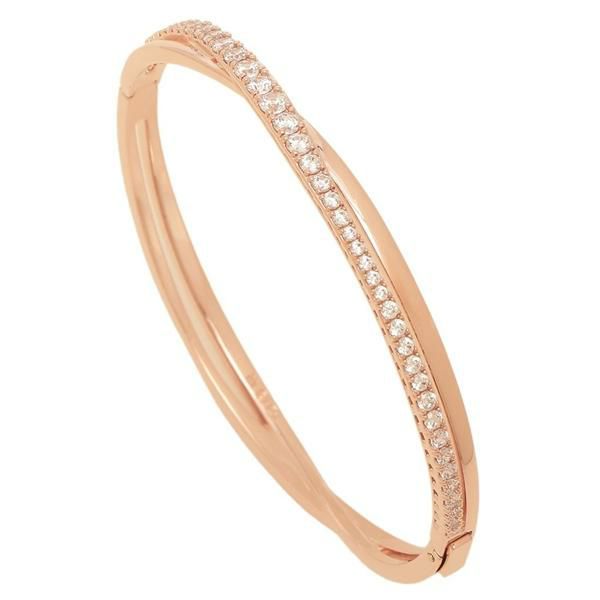 メタルカラーの艶のあるラインと、たっぷりのビジューを敷き詰めた華やかなラインをクロスさせた一品。スリムフォルムながらも、美しいきらめきで存在感を放ちます。デイリーユースにはもちろん、特別な日のドレススタイルにもマッチするアイテムです。