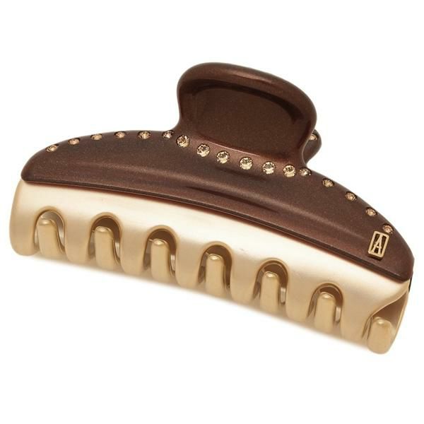 大人らしい深みのあるカラーで彩り、上品にまとめた一品です。アイコニックな「A」のメタルロゴは高級感を引き上げるアクセント。しっかりと髪を挟みこんでくれるバンスクリップタイプを採用し、長時間のお出かけの際にもヘアアレンジが崩れにくいのが魅力です。