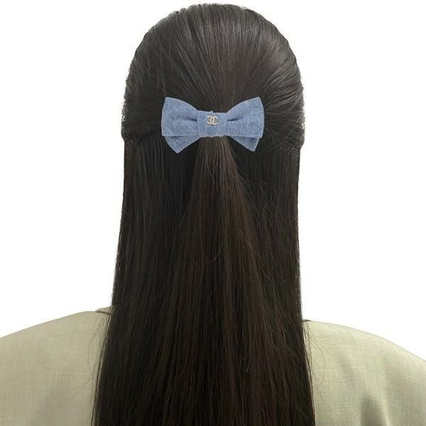 5. シャネル バレッタ ボウバレッタ デニム リボンモチーフ CCマーク ココマーク ブルー レディース CHANEL AAB661 B23096 U6472 2025秋冬新作