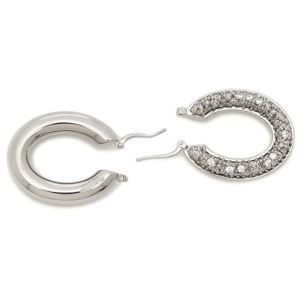 存在感のあるボリュームシルエットのフープ型ピアス。片側にはストーンをちりばめ、もう片側にはロゴを刻印しました。特別な日から毎日のスタイルまでどんなシーンも華やかに彩ってくれるアイテムです。
