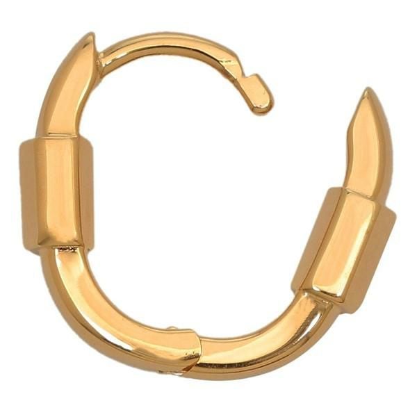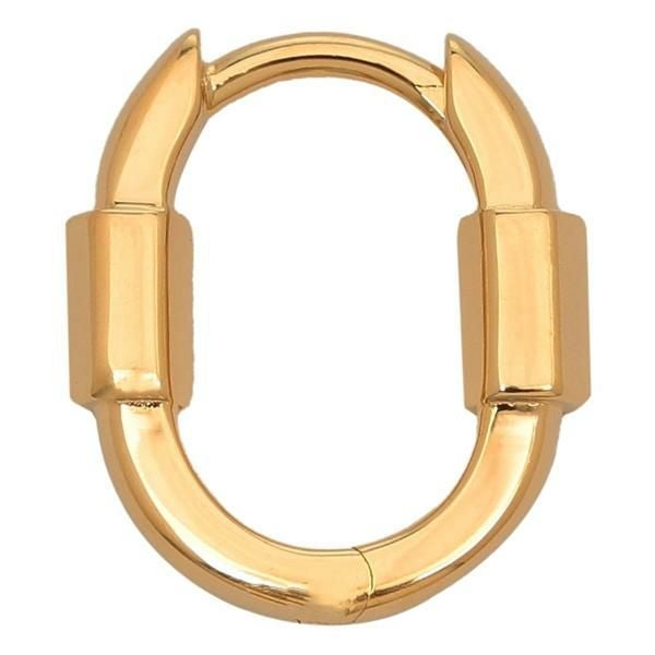 カラビナをデザインに落とし込んだようなモダンなルックスで、さりげない個性を光らせる一品です。艶やかな素材で光を弾き、しっかりと存在感があるのも魅力。デイリーユースにはもちろん、ドレスアップした際のアクセントにもいかがでしょうか。