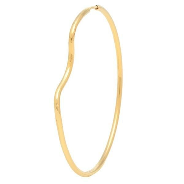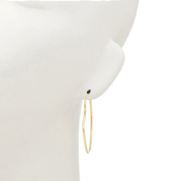 メタルカラーの美しい表情が引き立つシンプルなデザインが魅力の一品です。凹凸を配したニュアンス感のあるフォルムで、どこかアーティスティックな雰囲気に。キャッチ不要のフープタイプを採用し、着脱がスマートにこなせるのも嬉しいポイントです。