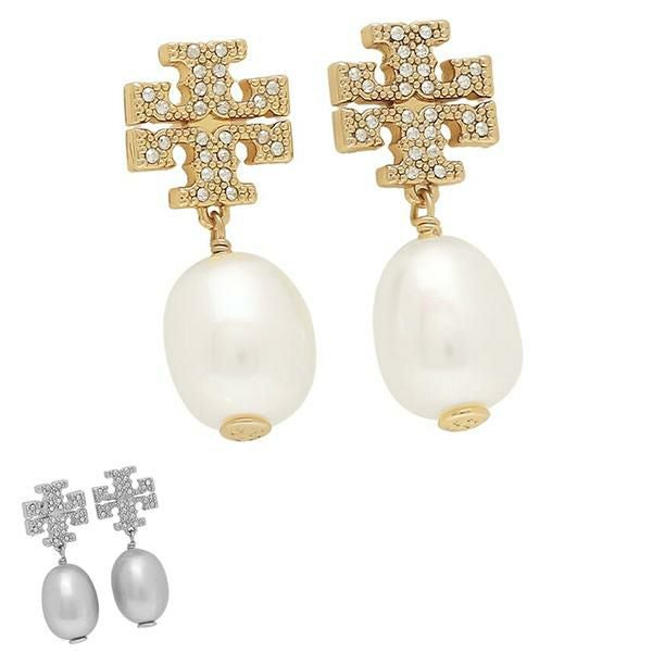 商品名トリーバーチ ピアス アクセサリー キラ ダブルTロゴ レディース TORY BURCH 60525 KIRA PAVE PEARL DROP EARRING