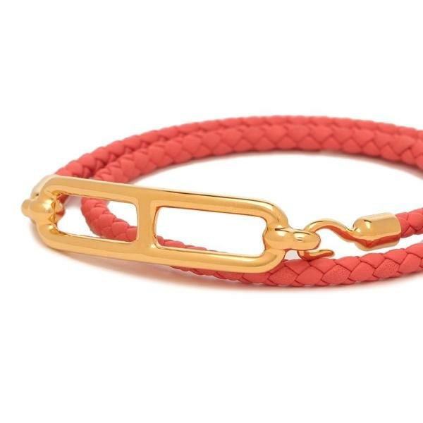5. エルメス ブレスレット ルリ ダブル ドゥブルトゥール ローズテキサス レディース HERMES H071727F 0E レッド