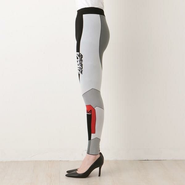 大胆なカラー切り替えとロゴデザインが存在感抜群のレギンス。脚のラインをすっきりときれいに見せる中肉厚のニット生地を使用しています。スウェットトップスやパーカーに合わせて、スポーティに着こなすのがおすすめです。