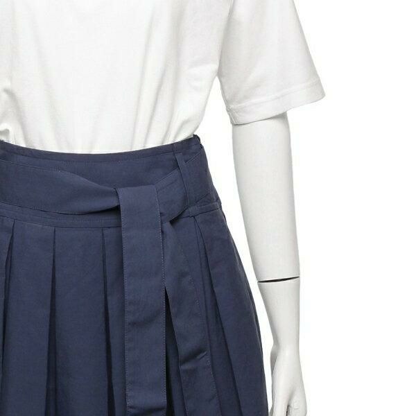 裾にかけて広がる、美しいプリーツデザインが魅力。落ち着いたカラーが上品な印象を与え、幅広いスタイリングにマッチします。ウエスト部分に組み合わせたタイベルトが、シャープなアクセントに。サイドにはファスナー付きで、着脱もスムーズに行えます。