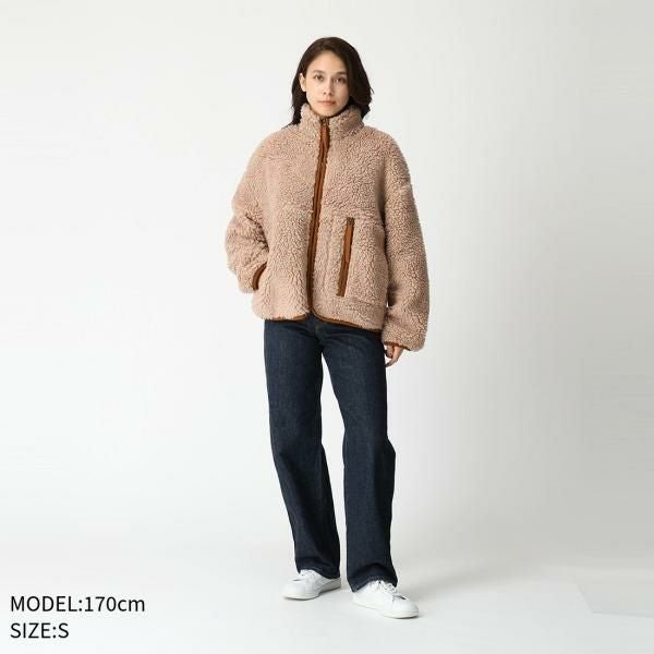 柔らかな風合いに心惹かれるフリース生地で仕立てた一着。高い保温性と軽さが特徴であり、寒い季節の防寒対策に重宝します。首周りのカバーに役立つスタンドカラーも嬉しいポイントです。優しい雰囲気が漂うカジュアルなデザインで、幅広いスタイリングに馴染みます。