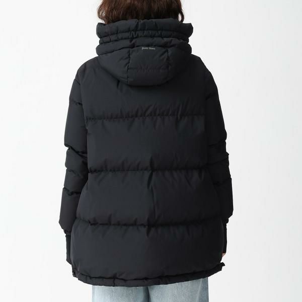 太めのキルティングデザインに、裾にかけて広がるAラインシルエットが特徴です。防寒性を高める袖口のインナーカフや、大きめのフード付きもポイント。スカートからパンツスタイルまでバランス良く着こなせる1着です。